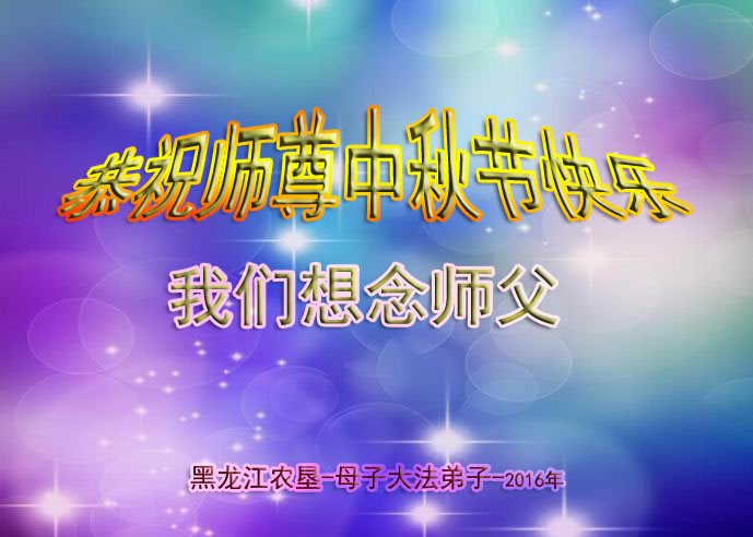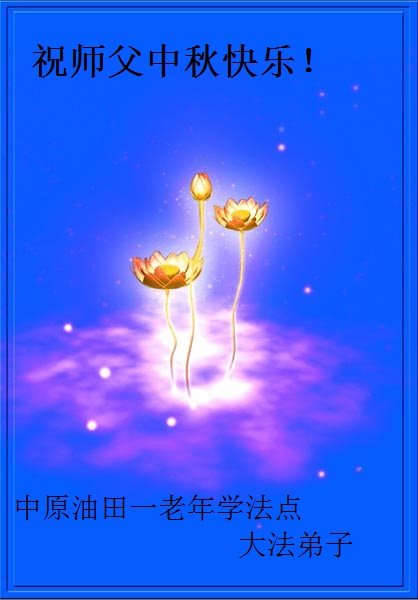 师父您辛苦了!中秋快到了,弟子想念您!谢谢师父对弟子的慈悲苦度! 中原油田一老年学法小组大法弟子恭祝师父中秋快乐!