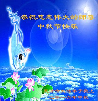 尊敬的师尊: 值此中秋佳节之际,恭祝慈悲伟大的师尊中秋快乐! 我和母亲同修会按照师尊的教诲勇猛精進,修去执着心,跟上正法進程。 天津母女大法弟子敬上 2016年9月11日 天津塘沽新港大法弟子恭祝师尊中秋节快乐!
