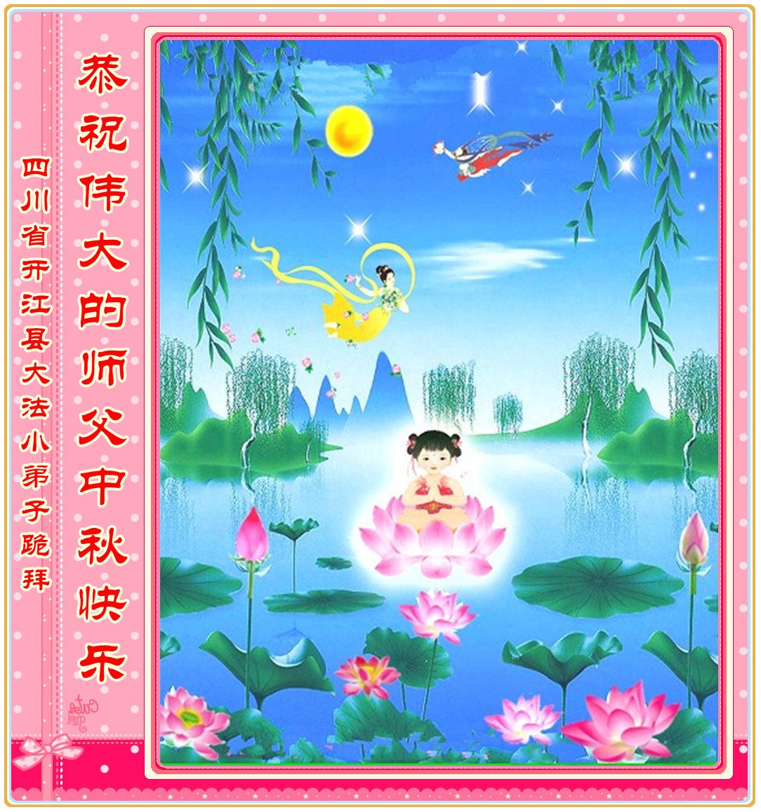 弟子跪谢师尊慈悲救度!感恩师尊分分秒秒的慈悲呵护,使弟子在真善忍大法中不断的升华,无论在任何环境中,都能按照真善忍大法指导自己的一言一行。弟子自知距离大法的标准还差的很远,因此弟子今后要更加勇猛精進,争取救度更多的世人進入美好的未来,圆满的跟师尊回家! 大陆一大法小弟子恭祝师父中秋快乐!