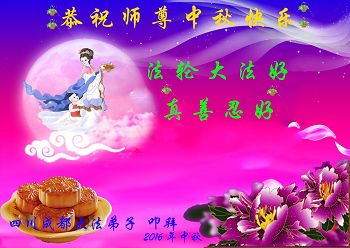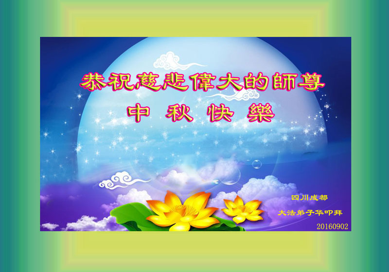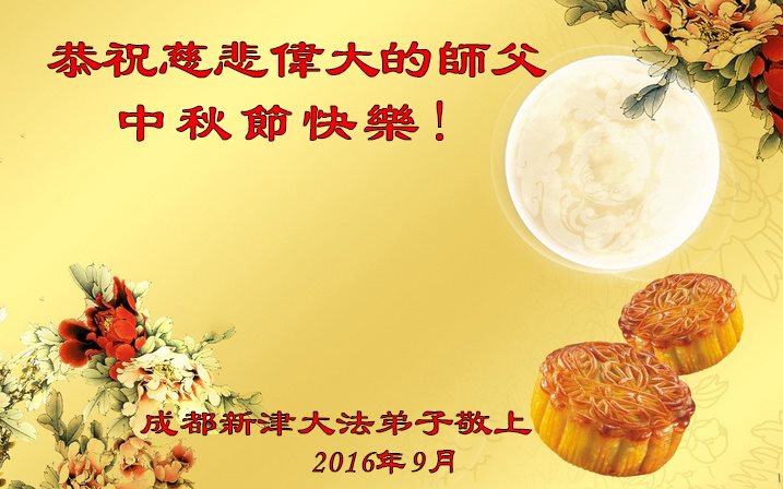 【明慧网二零一六年九月十三日】 四川成都大法弟子恭祝师尊中秋佳节快乐!