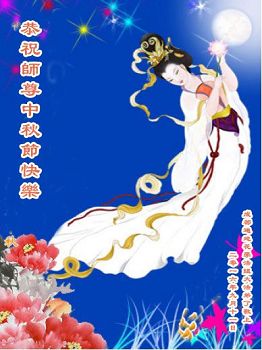 师父您好!师父辛苦了! 又是中秋月圆时 遥望苍穹颂师恩 转动法轮天地正 再造洪宇星光明 甘露撤遍世间道 慈悲苦度救众生 佛光普照天地变 人心向善古风回 弟子有幸修大法 身心得救不忘恩 尊师重道牢牢记 助师正法多救人 修心断欲存正念 神路之上塑金身 神州古俗团圆日 弟子翘首盼师归 四州四川省成都双流大法弟子母女恭祝伟大慈悲的师父中秋快乐!