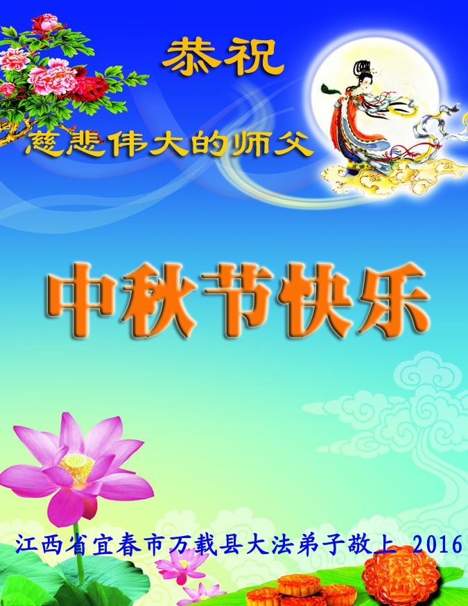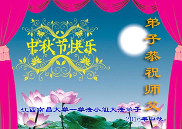 【明慧网二零一六年九月十三日】 江西南昌大法弟子恭祝师父中秋快乐!