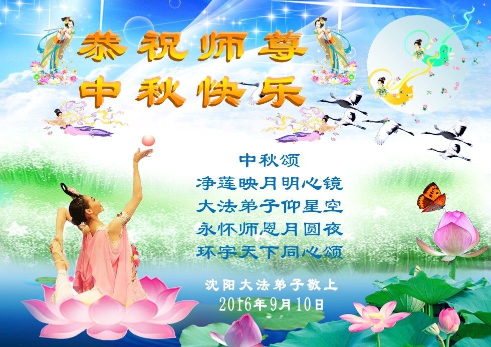 谢谢师父的慈悲呵护,弟子一定重视学法、发正念,在讲真相救人的路上做的更纯正、更好! 沈阳大法弟子 二零一六年九月十一日 辽宁省沈阳沈北新区一大法弟子恭祝师尊中秋节快乐!
