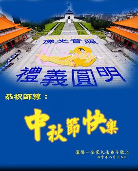 弟子要做好三件事,多救人。迎接师尊早日回大陆。 辽宁省沈阳市沈河区大法弟子恭贺师尊中秋节快乐!