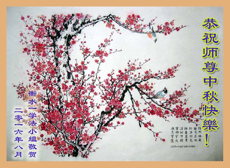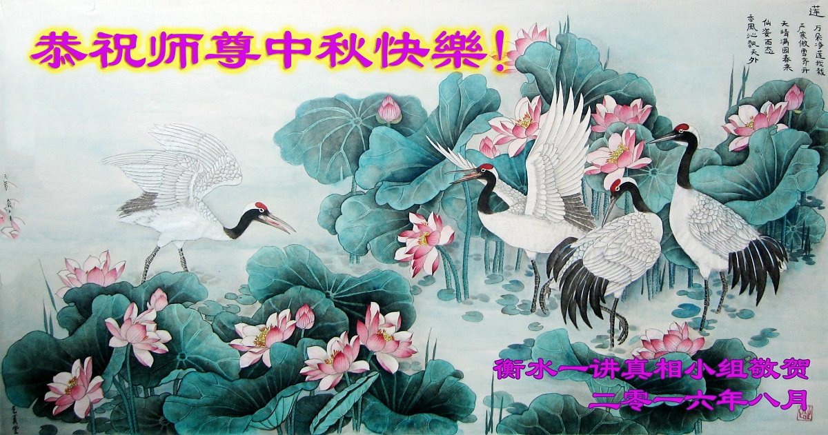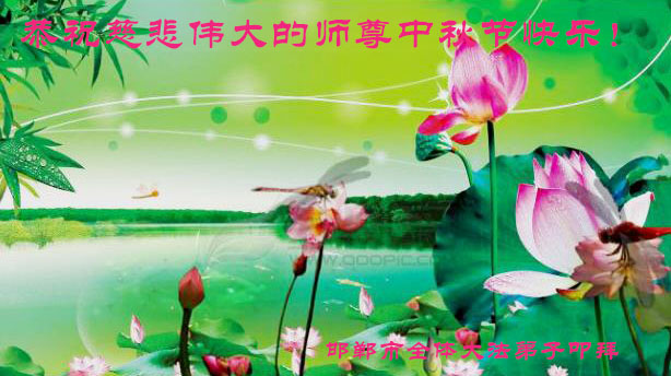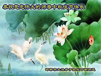 慈悲伟大的师尊您好!弟子们想念师父,我们期待着与师尊团圆的那一天早日来临! 河北衡水一讲真相小组大法弟子恭祝师尊中秋节快乐!