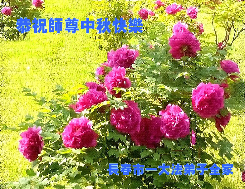 师父好!师父好!师父永远好! 我们学法小组全体大法弟子听师父的话,按照大法标准要求自己,学好法,炼好功,发好正念,修炼好自己,多救人。完成伟大师尊赋予弟子们的神圣使命!恭迎师父早日回家乡! 弟子跪拜师父! 吉林省长春荣光路大法弟子恭祝慈悲伟大的师尊中秋快乐!