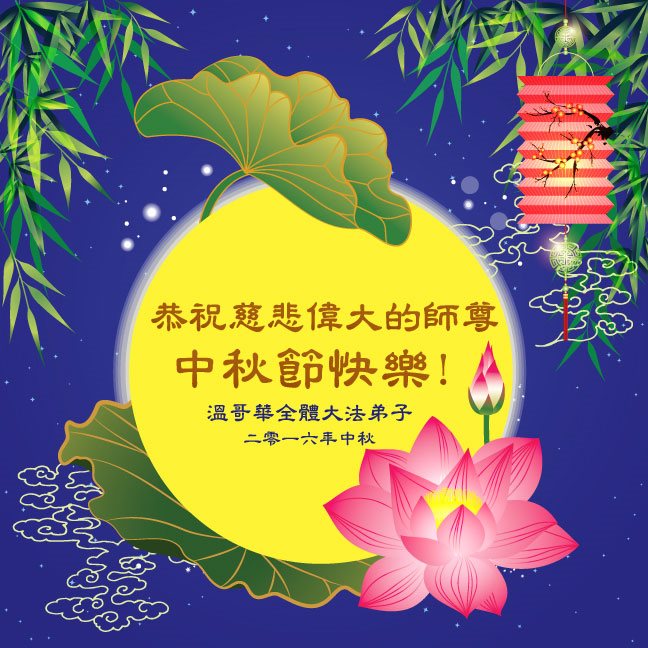 温哥华全体大法弟子恭祝慈悲伟大的师尊中秋节快乐!