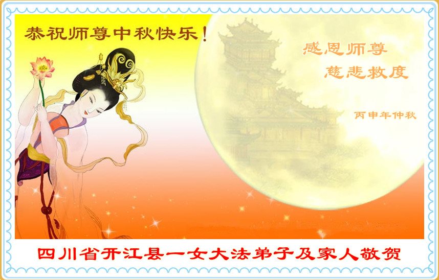 四川省达州市开江县一女大法弟子及家人恭祝师尊中秋快乐!