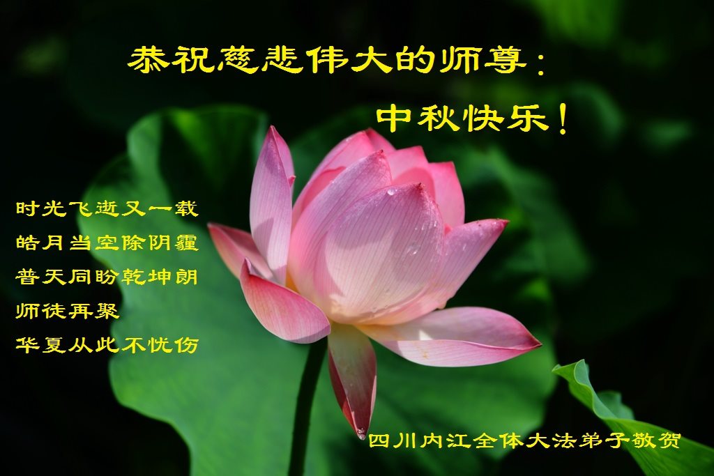 恭祝慈悲伟大的师父中秋节愉快! 我们谨遵您的教诲,走正师父安排的路,做好三件事,圆满随师还。 四川遂宁市金椿俩人大法弟子恭祝慈悲伟大的师尊中秋快乐!