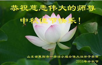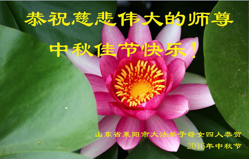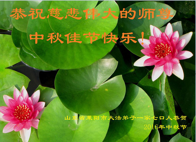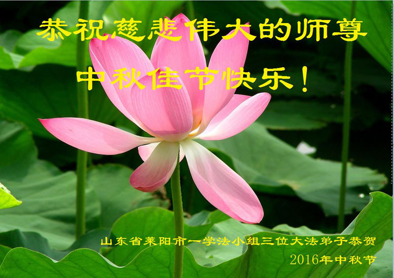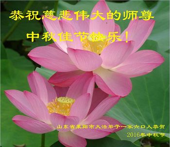【明慧网二零一六年九月十四日】 山东成武大法弟子恭祝慈悲伟大的师尊中秋节快乐!