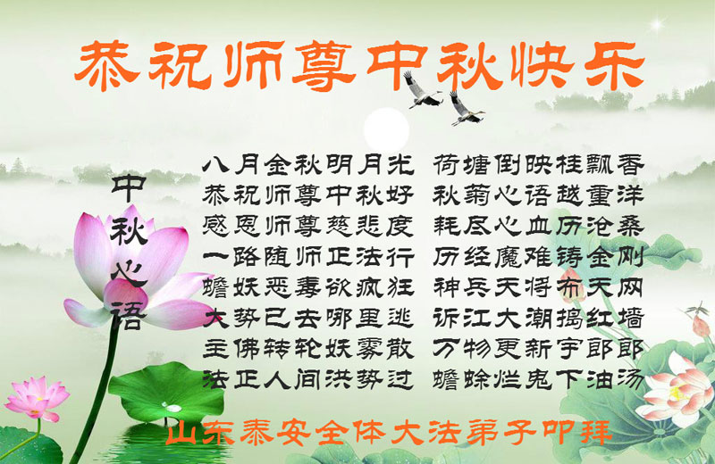 山东泰安全体大法弟子恭祝师尊中秋快乐!