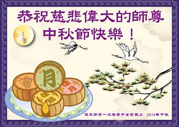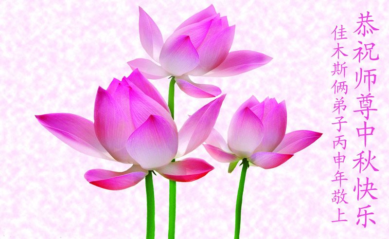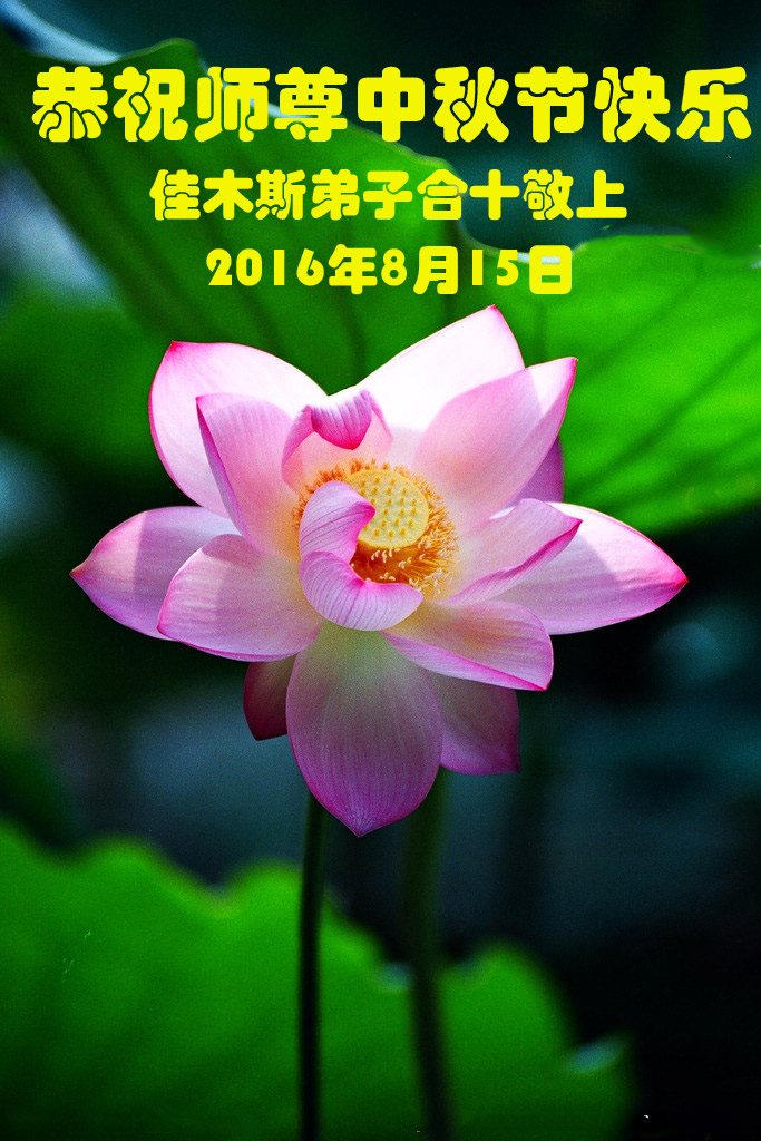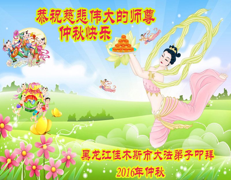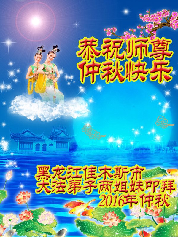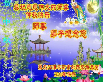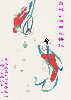 【明慧网二零一六年九月十四日】 黑龙江佳木斯市一大法弟子全家恭祝师尊中秋快乐!