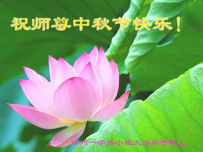 在17年的正法修炼路上,师尊的给予、对弟子的呵护、替弟子的承担等等、为弟子操尽了心。在最后的修炼路上,弟子唯有做好三件事,才能让师尊放心。 河北省保定全体大法弟子恭祝师尊中秋节快乐!