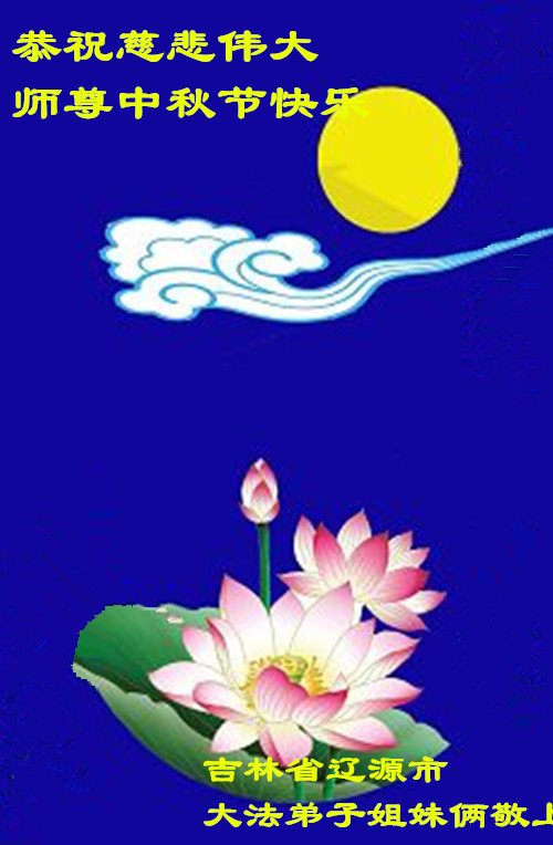 师尊啊,我们是中国大陆吉林省辽源市大法弟子,在中秋佳节到来之际,我们无比想念伟大的师尊,愿我们的思念化作最美好的祝愿,感谢师尊的慈悲苦度。谢谢师尊! 大团圆 中秋佳节月不圆, 乌云遮月不见天。 邪恶疯狂十七载, 活摘迫害惨人寰。 师尊慈悲救众生, 大法弟子真相传。 法正人间光明显, 师徒相见大团圆。 叩拜师尊 吉林省辽源市大法弟子敬上 吉林省辽源市大法弟子姐妹俩恭祝慈悲伟大师尊中秋节快乐!
