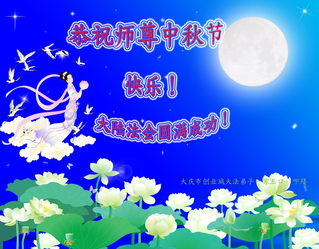 黑龙江大庆开发区大法弟子恭贺师尊中秋节快乐!
