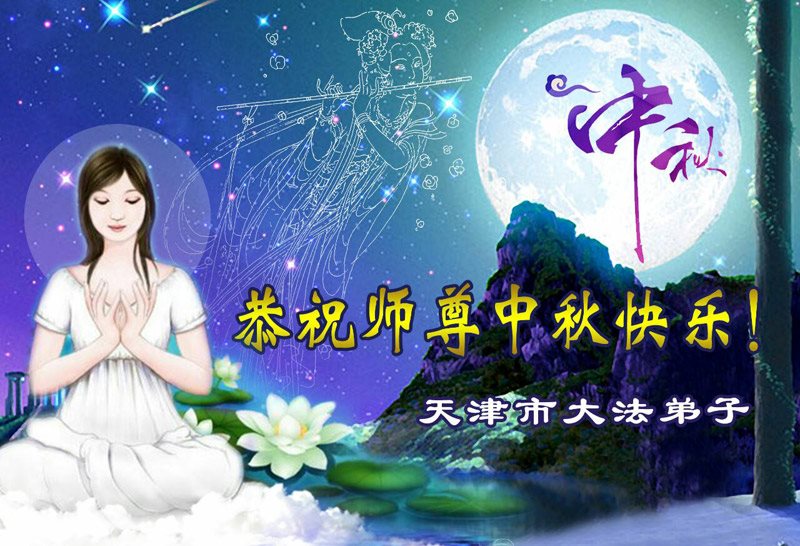 天津大法弟子恭祝慈悲伟大的师尊中秋节快乐!