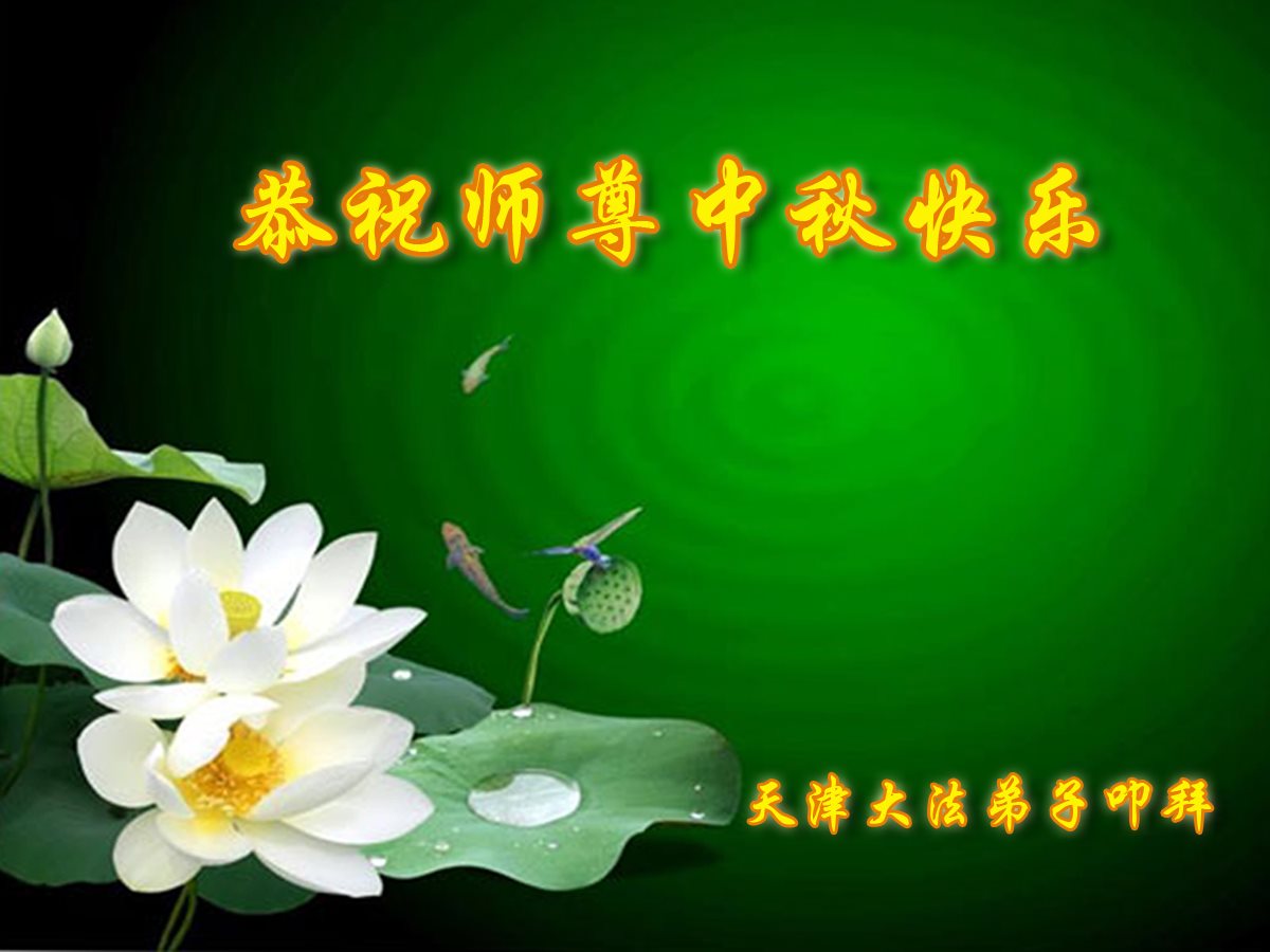 师父您好!师父您辛苦了! 感恩师父!感恩大法!感恩师父的精心慈悲苦度!弟子一定精進实修自己,用大法归正自己的一思一念、一言一行,做好三件事,完成自己的使命,兑现史前大愿,修好自己多救众生以报师恩! 天津大法弟子恭祝慈悲的师尊中秋节快乐!