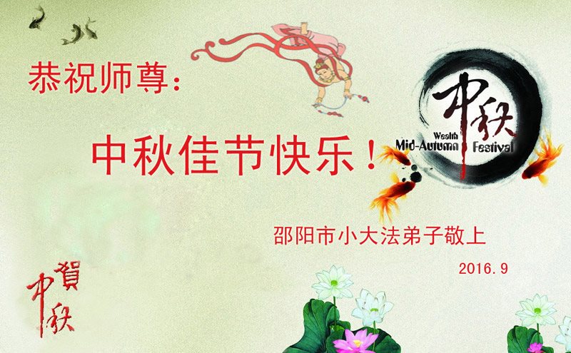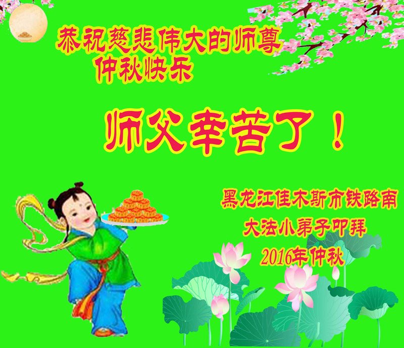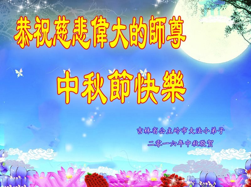 【明慧网二零一六年九月十四日】 山东泰安大法小弟子恭祝慈悲伟大的师尊中秋快乐!