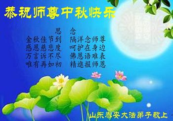 山东泰安全体大法弟子恭祝慈悲伟大的师尊中秋快乐! 山东泰安大法弟子恭祝师尊中秋快乐!
