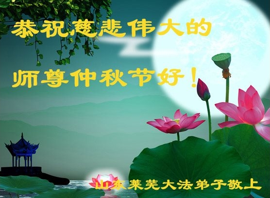 慈悲伟大的师尊好!在中秋佳节来临之际,弟子祝愿师尊节日快乐! 谢谢师尊的慈悲苦度,弟子一定要好好学法,多救众生,弟子时刻牢记师尊的教导:用大法纯净自己。遇事向内找,去除不好的观念和人心、做好三件事,走好师父给安排的修炼路,兑现誓约,不辜负师尊的慈悲苦度。 山东大法弟子恭祝师尊中秋节好!
