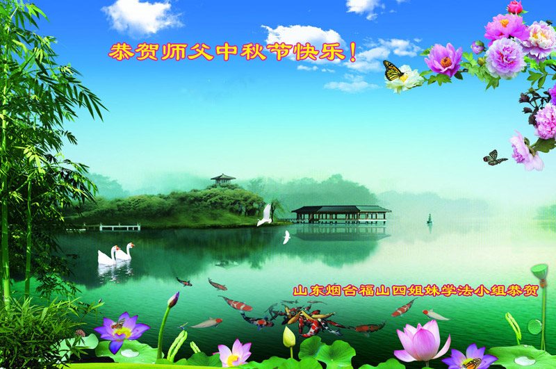 【明慧网二零一六年九月十四日】 山东烟台福山四姐妹学法小组恭祝师父中秋节快乐!