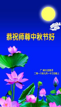 【明慧网二零一六年九月十四日】 广东省广州市全体大法弟子恭贺师父中秋快乐!