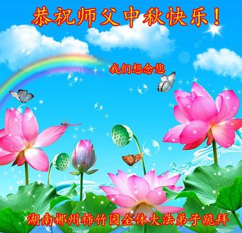 【明慧网二零一六年九月十四日】 湖南省郴州市柿竹园一学法小组全体大法弟子恭祝师父中秋快乐!