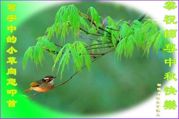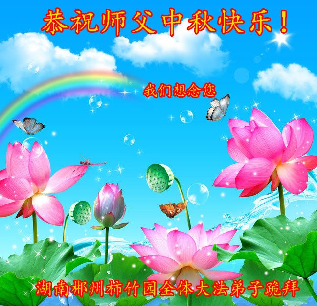 值此中秋佳节之际,弟子恭祝最慈悲伟大的师父中秋快乐! 湖南湘潭县一老年大法弟子恭祝慈悲伟大的恩师中秋节快乐!