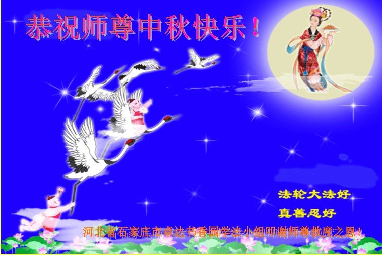 河北省石家庄市方兴学法组大法弟子恭贺慈悲、伟大的师尊中秋节快乐!