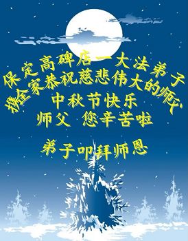 师尊您辛苦啦 ,恭祝慈悲伟大的师父中秋节快乐! 跪拜师尊 合十 河北省保定市莲池区一学法小组大法弟子恭祝师尊中秋快乐!