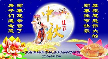 【明慧网二零一六年九月十五日】 内蒙古莫旗全体大法弟子恭祝慈悲伟大的师父中秋节快乐!