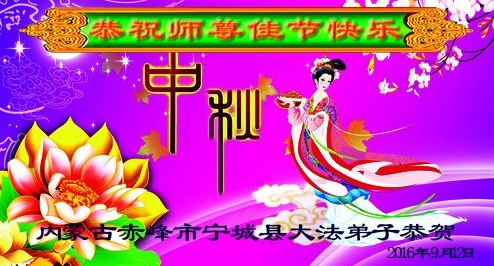 内蒙古赤峰市宁城县大法弟子恭祝慈悲伟大的师尊中秋佳节快乐! 内蒙古全体蒙古族大法弟子恭贺师尊2016年中秋快乐!