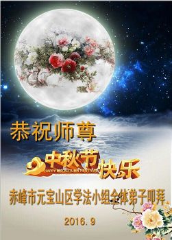 中秋贺词 祝师父中秋快乐! 望明月忆师恩 八月十五月最圆 助师路上冲万难 浊世救人一往无前 返本归真随师还 合十 内蒙古赤峰市元宝山区大法弟子恭祝师尊中秋快乐!