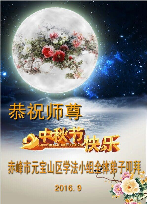 在中秋佳节来临之际,祝慈悲伟大的师父中秋节快乐! 内蒙古赤峰红山区一大法弟子 内蒙古赤峰市宁城县大法弟子恭祝师尊中秋节快乐!