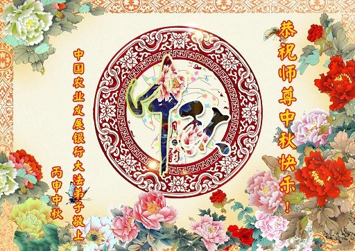 【明慧网二零一六年九月十五日】 中国农业发展银行大法弟子恭祝师尊中秋快乐!