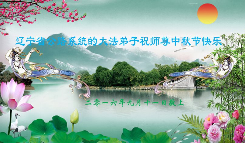个体行业的大法弟子祝师父中秋节快乐! 弟子们在经商时,一定按照真善忍的标准去为人处世,做事考虑别人,宁可自己吃亏,也让对方满意,处处让世人看到法轮大法的美好,在自己的环境中更好的救度众生,弟子们叩拜师父。 辽宁省公路系统的大法弟子祝师父中秋节快乐!