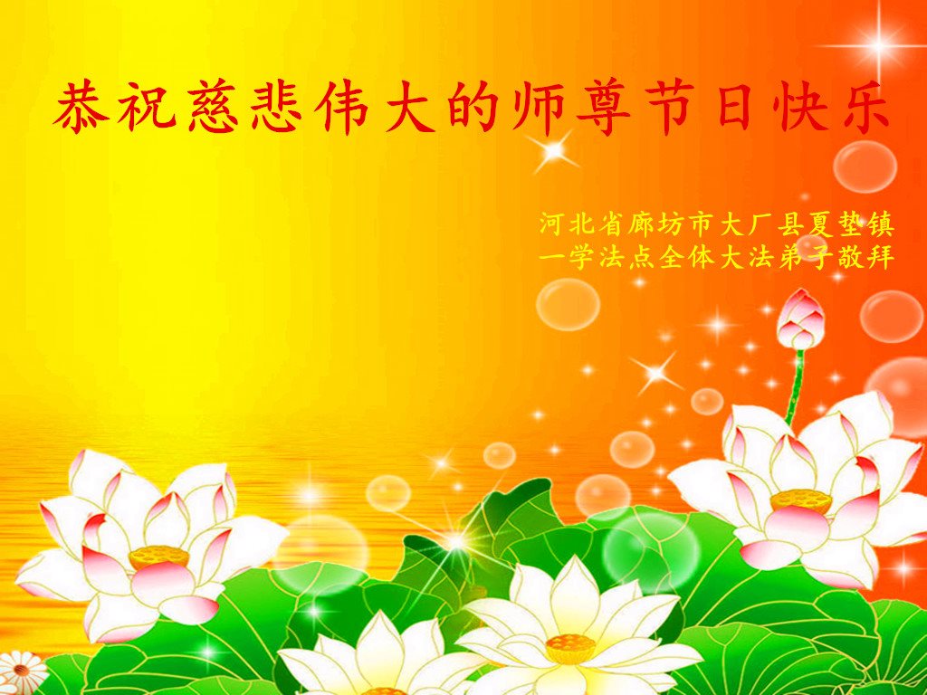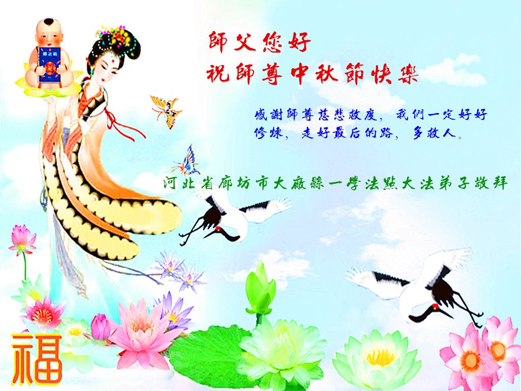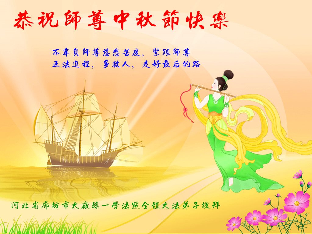 河北省廊坊市大厂县夏垫镇一学法点全体大法弟子祝师尊中秋节快乐!