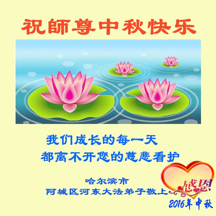 【明慧网二零一六年九月十五日】 黑龙江省哈尔滨市双城市区学法小组恭祝师尊中秋快乐!