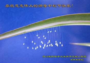 感恩师父!感恩大法!弟子不辜负师父慈悲救度!一定遵照师父的教诲,做好三件事,走好最后的修炼路,圆满随师还。 四川遂宁大法弟子跪拜 四川眉山大法弟子恭祝师尊中秋快乐!
