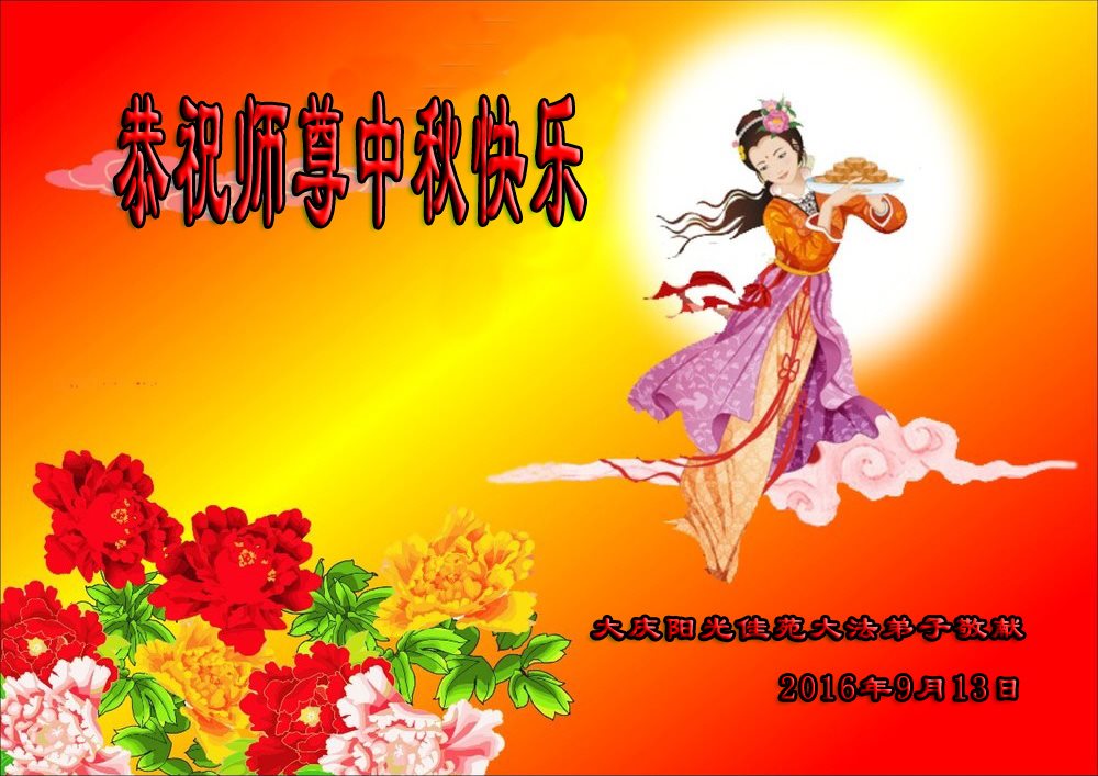 【明慧网二零一六年九月十五日】 黑龙江省大庆大法弟子祝师尊中秋快乐!