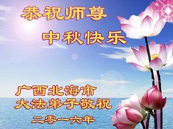 又迎来了一个中秋节,作为弟子的我,不懂用什么语言来表达对师尊的感恩!师父又一次给了我生命!在今年五月十九日晚被邪恶追杀的我,在师尊的慈悲呵护下,我已安全脱险。没有师父的保护,也许我就不能还在中秋佳节与师父团圆了。此时的我禁不住泪流满面,师父无时无刻不在弟子的身边呵护!弟子跪谢恩师的慈悲救度!我定会好好珍惜师父给弟子延长来的生命! 在最后的时间里,弟子无条件的做更多的真相资料给同修救度更多的众生!做好三件事。走师父安排的路,跟师父回家!在此送上诚挚的问候和祝愿:师父——您辛苦了!祝师父中秋快乐! 广西壮族自治区玉林市陆川县一大法弟子 2016年9月7日 广西玉林市博白县部份大法弟子中秋佳节恭贺师父