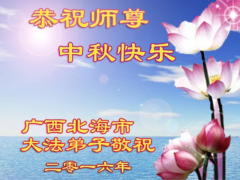 广西壮族自治区北海市大法弟子恭祝慈悲伟大的师尊中秋佳节快乐!弟子们思念师尊! 广西崇左市全体大法弟子恭祝李洪志师父中秋快乐!