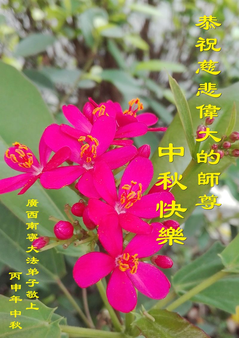 弟子们感恩师尊慈悲苦度,一定做好三件事,完成史前大愿。 广西大法弟子祝师父中秋节好!