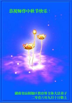 全体教育系统的大法弟子敬上! 二零一六年九月十三日 湖南岳阳地区教育界全体大法弟子恭贺师尊中秋节快乐!