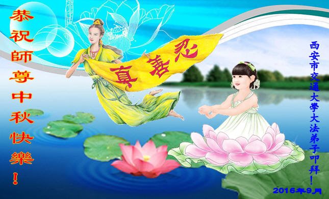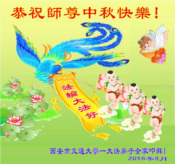 【明慧网二零一六年九月十五日】 陕西省西安交通大学大法弟子及全家叩拜师尊中秋快乐!