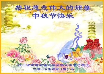 【明慧网二零一六年九月十五日】 四川省西南石油大学全体大法弟子恭祝师尊中秋节快乐!