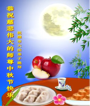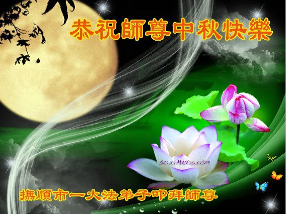 师父好!恭祝师父中秋节快乐! 抚顺市被迫害的大法弟子们敬上! 辽宁省抚顺市东洲区全体大法弟子敬上! 抚顺市全体大法弟子敬上!