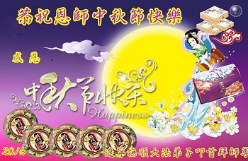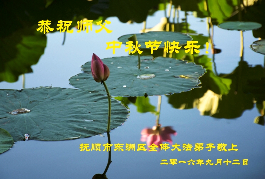 【明慧网二零一六年九月十五日】 辽宁省抚顺市大法弟子跪拜师尊,恭祝慈悲伟大的师尊中秋节快乐!