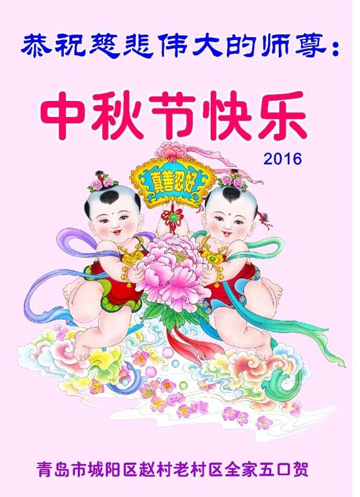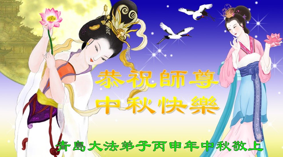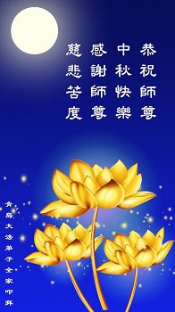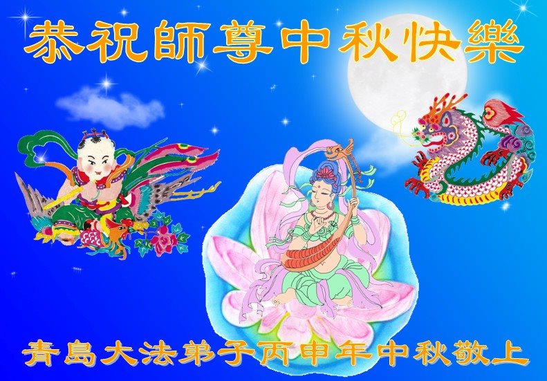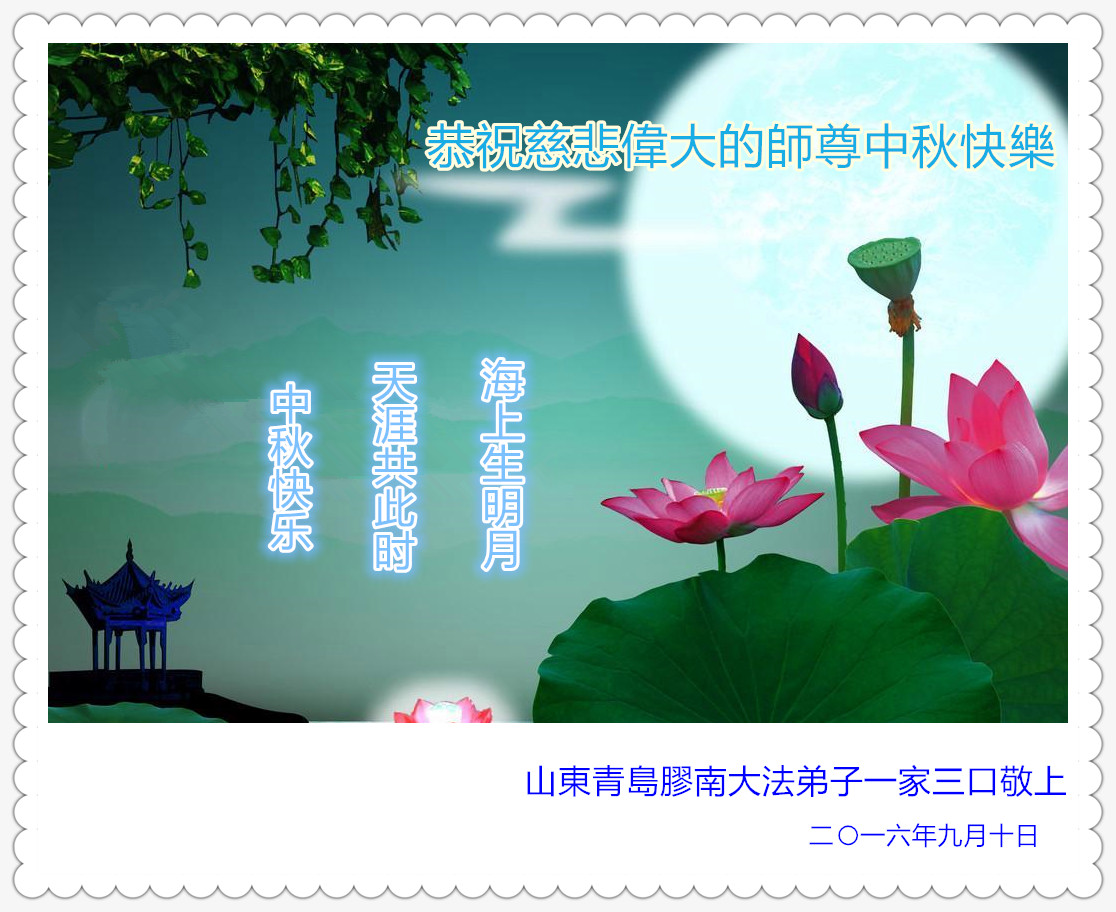 青岛大法弟子全家恭祝慈悲伟大的师尊中秋快乐! 山东省青岛一学法小组全体大法弟子恭祝慈悲伟大的师尊中秋快乐!