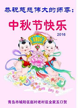 师父您辛苦了!大法弟子一定做好三件事,让您放心。 山东省青岛大法弟子全家恭祝师尊中秋快乐!